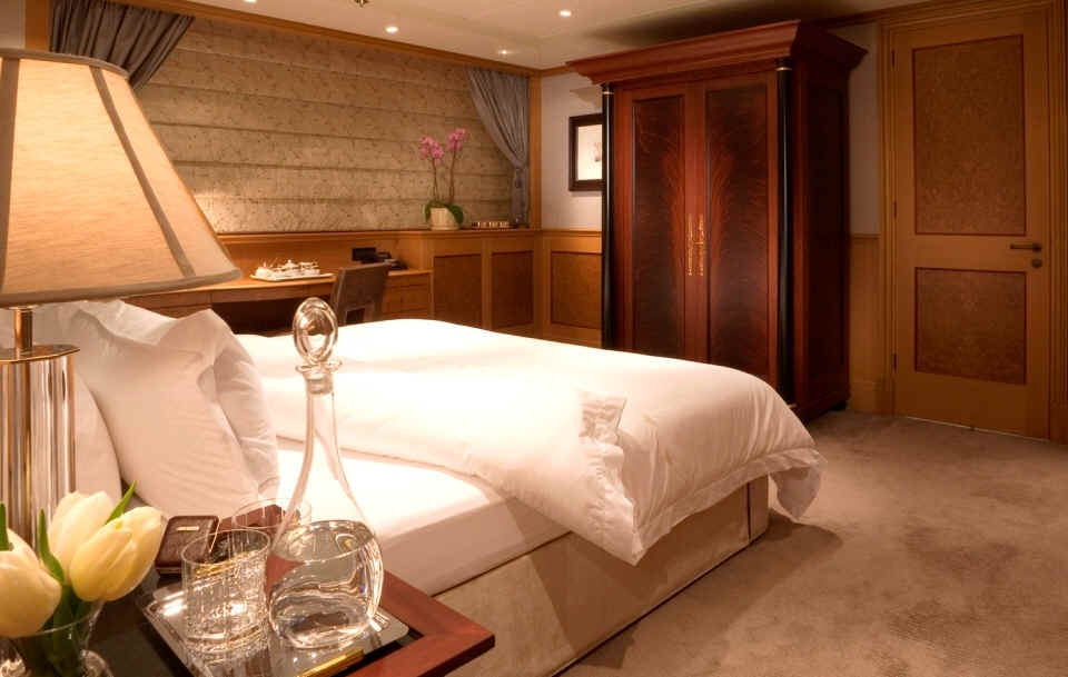 Main deck: Two equal king size VIP staterooms, full width, each with en suite