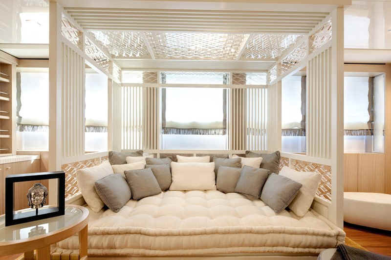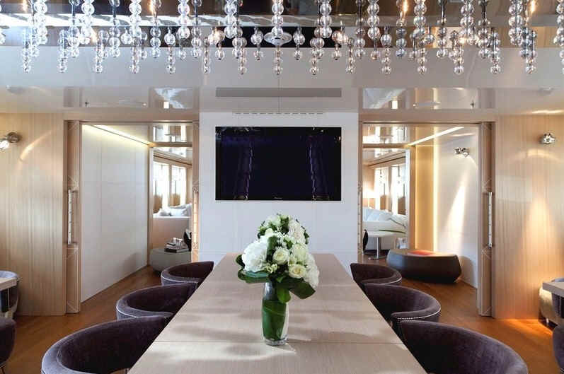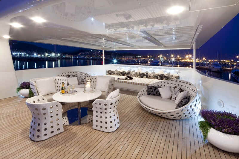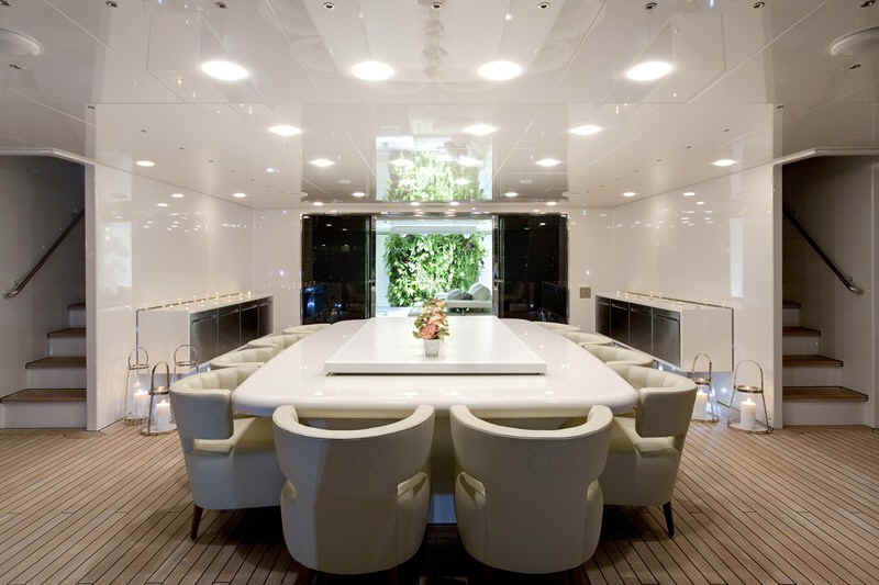 large dining table on the heli deck seats up to 12 guests in comfort and it