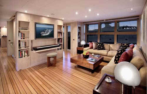 With her spacious living area, the yacht boasts a fully equipped gymnasium, well